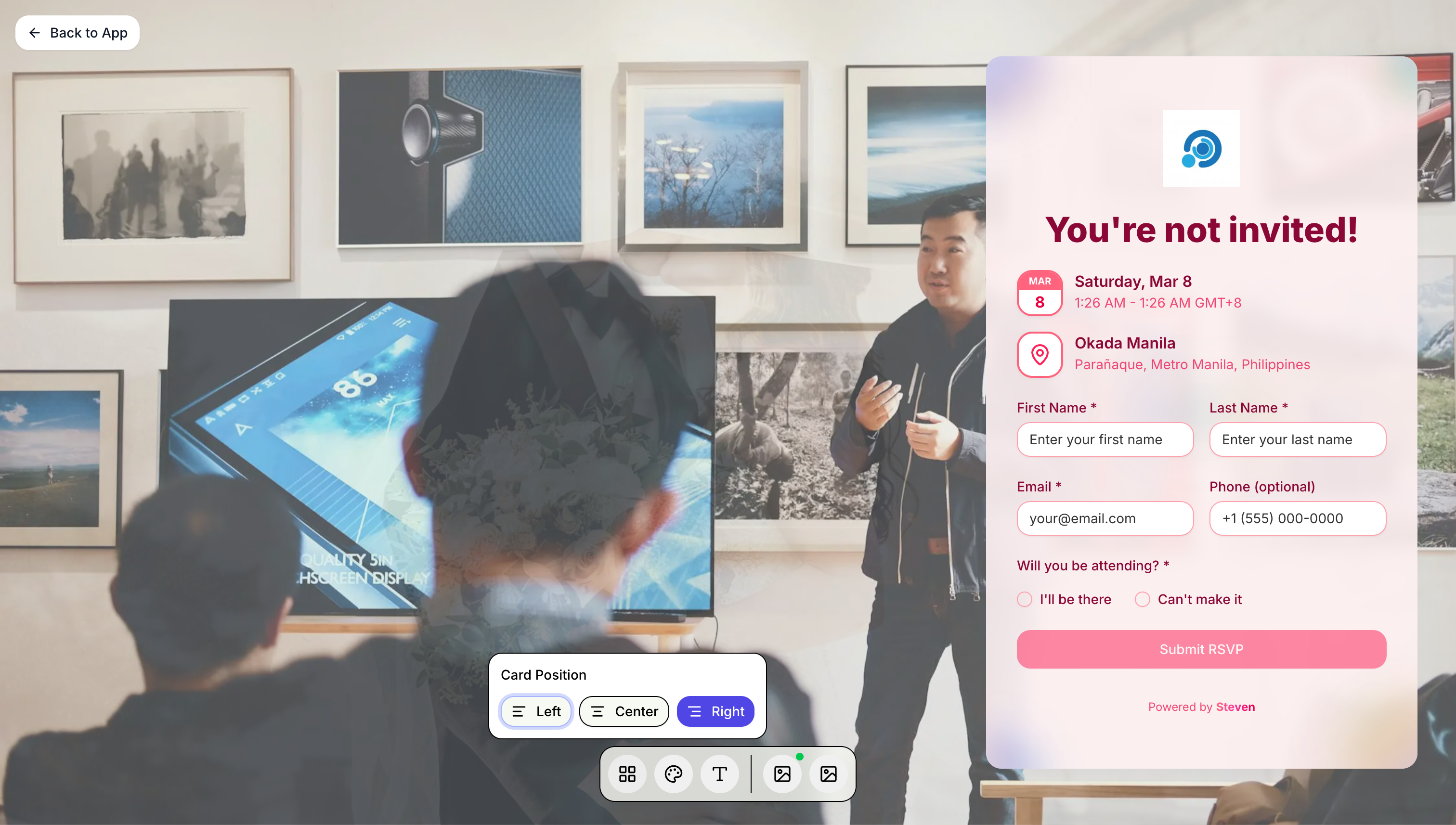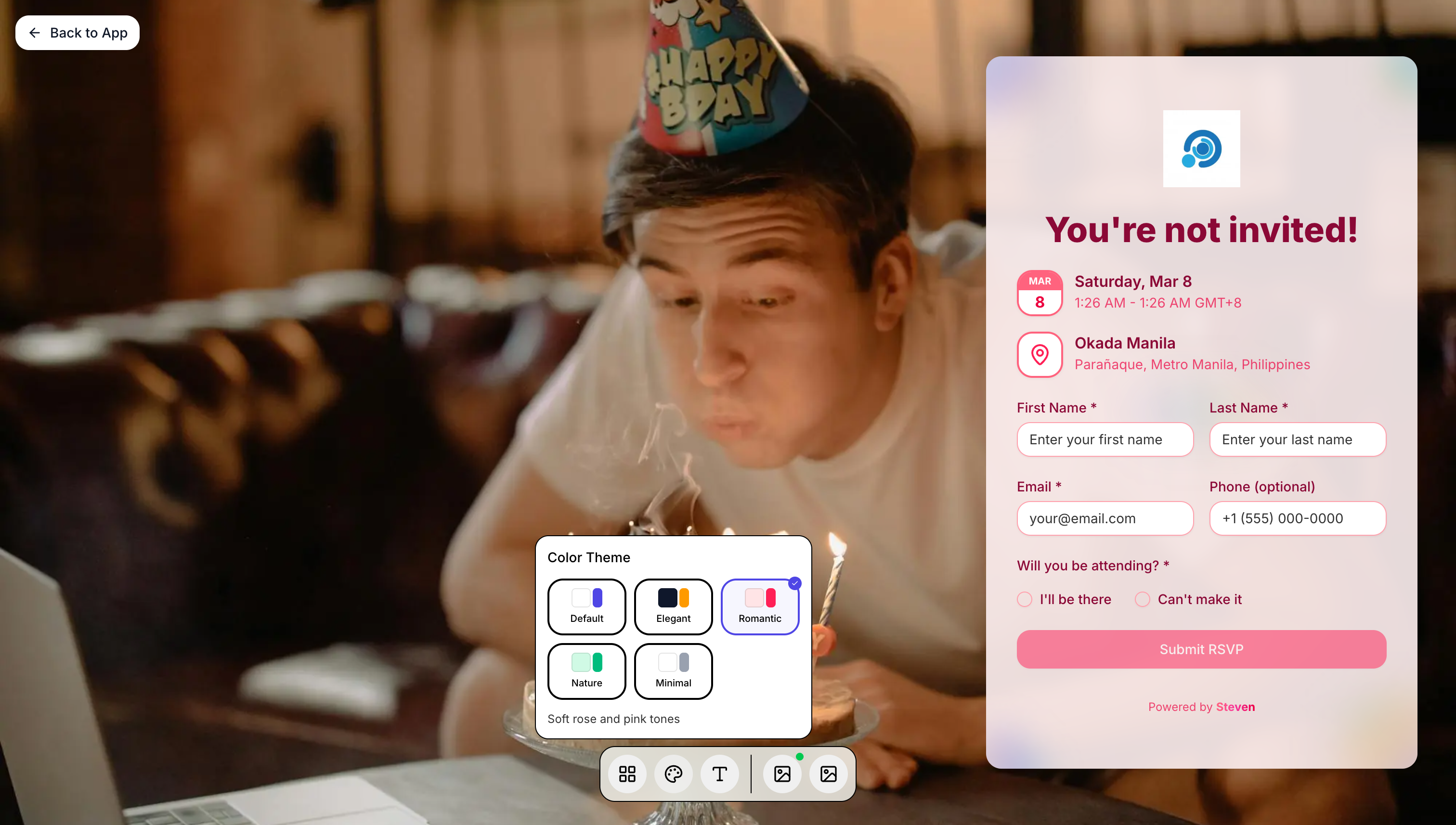 Easily collect and track guest responses with STEVEN's built-in RSVP system.